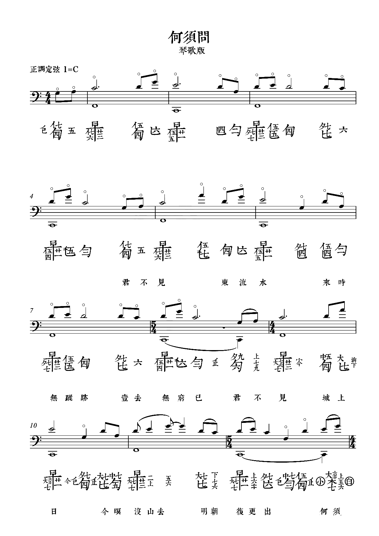查看对应的古琴谱