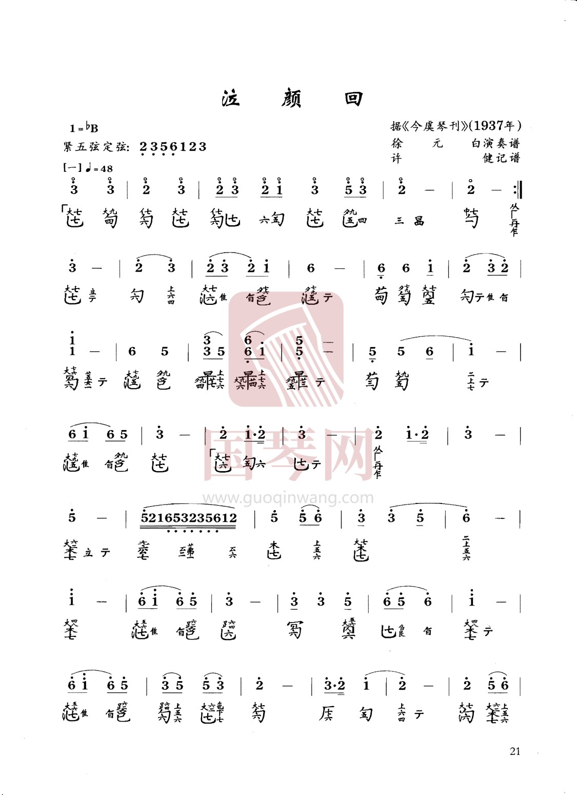 据《今虞琴刊》徐元白演奏谱 许健记谱